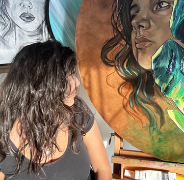 SoGo a grandi à Québec et fait maintenant sa vie au Lac St-Jean. Elle a immigré au Québec à l'âge de 8 ans, ce qui lui a donné la chance de grandir entre deux cultures : la culture colombienne et la culture québécoise. Ce contexte a certainement nourri sa fascination pour la complexité humaine, car dès son jeune âge, elle s'est dédiée aux portraits avec l'objectif de véhiculer une émotion. Les arts visuels ont toujours fait partie de sa vie : elle passait son temps à dessiner, peindre et sculpter. À travers la peinture et le dessin, SoGo a complété deux certificats universitaires (psychologie et sexologie), suivis de sa formation en psychoéducation (baccalauréat et maîtrise).