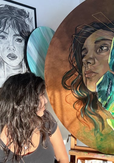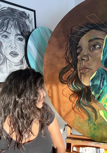 SoGo a grandi à Québec et fait maintenant sa vie au Lac St-Jean. Elle a immigré au Québec à l'âge de 8 ans, ce qui lui a donné la chance de grandir entre deux cultures : la culture colombienne et la culture québécoise. Ce contexte a certainement nourri sa fascination pour la complexité humaine, car dès son jeune âge, elle s'est dédiée aux portraits avec l'objectif de véhiculer une émotion. Les arts visuels ont toujours fait partie de sa vie : elle passait son temps à dessiner, peindre et sculpter. À travers la peinture et le dessin, SoGo a complété deux certificats universitaires (psychologie et sexologie), suivis de sa formation en psychoéducation (baccalauréat et maîtrise).