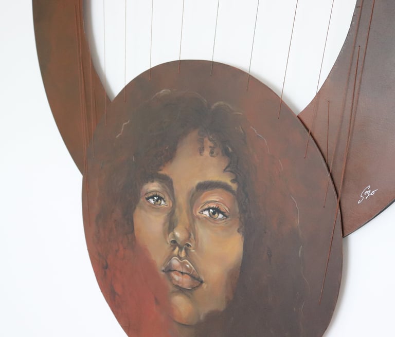 En 2024, ses élans créatifs l’amènent à associer fils à broder, bois de merisier et toile de coton. Ce mariage de matériaux, combiné à sa démarche artistique, devient sa signature et marque son entrée officielle dans le milieu artistique.