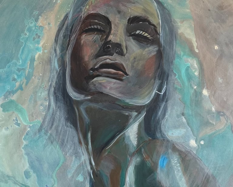 Avec Ardeur libre, je voulias représenter une femme affranchie et confiante, qui n'a besoin de personne pour se sentir complète. Les yeux clos, elle s'abandonne à sa propre ardeur intérieure. Sa posture et son expression traduisent une liberté assumée, une force qui sait rayonner sans même avoir ouvert les yeux.