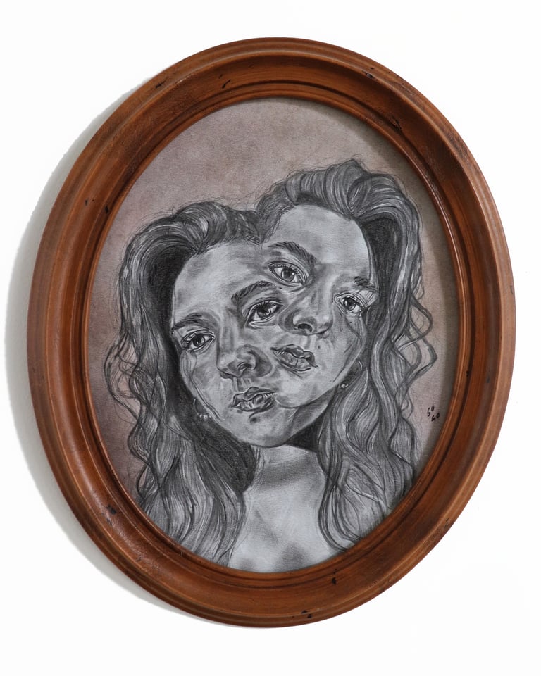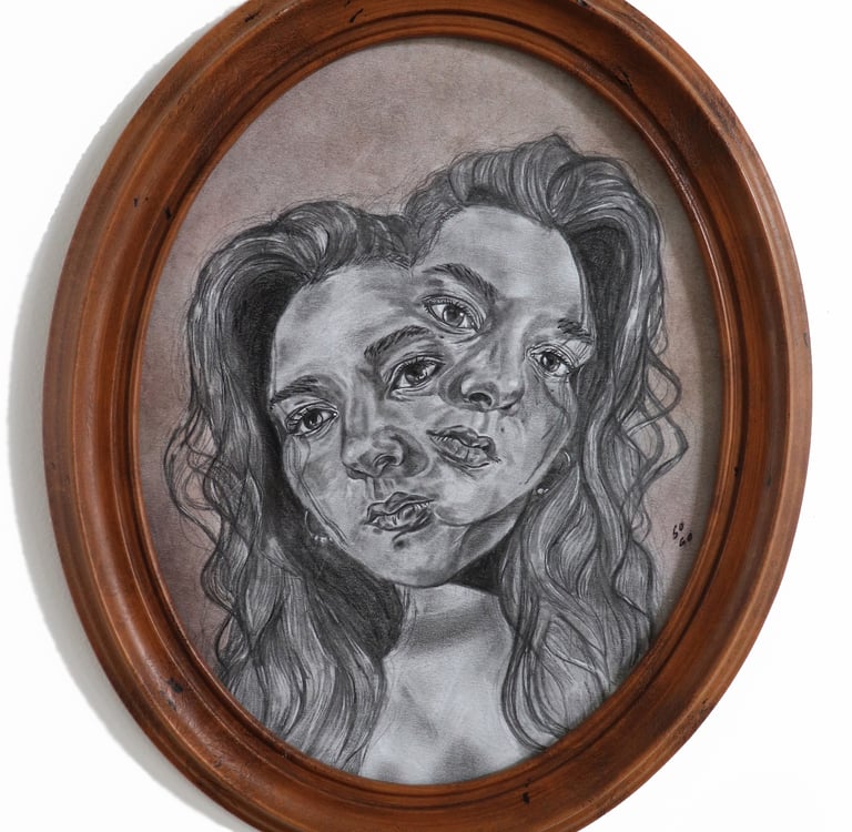 Format avec le cadre de 14''X 13'' | Fusain et graphite sur carton blanc de montage