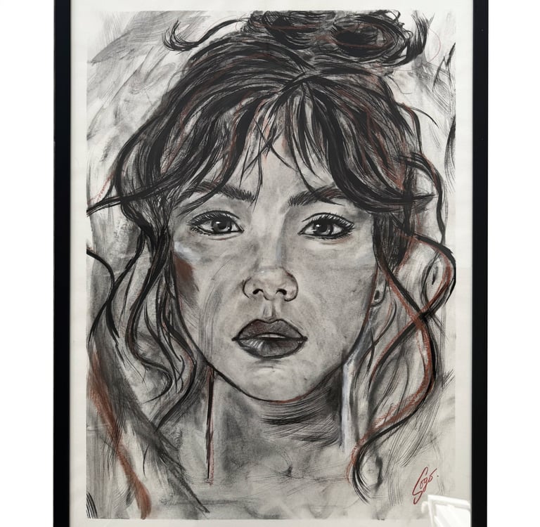 Format avec le cadre de 25''X 19'' | Fusain et encre de chine sur papier sans acide de 130g