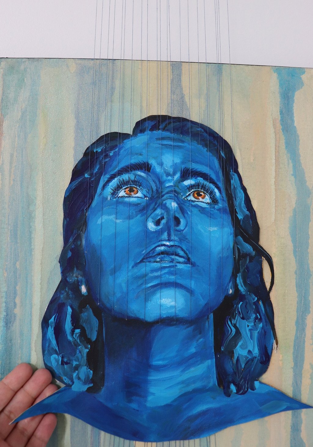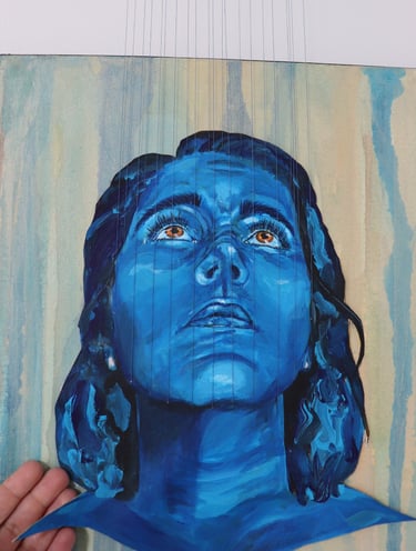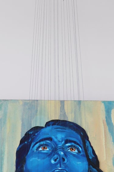 J'ai adoré jouer avec cette dualité. J'aime l'idée qu'on puise alterner entre l’admiration pour l’effort et l’empathie pour la détresse avec la même oeuvre. Et avec les fils qui dépassent vraiment de la toile, on vie une expérience immersive: ils brisent le cadre et rappellent qu'on peut se permettre de sortir des sentier battu.